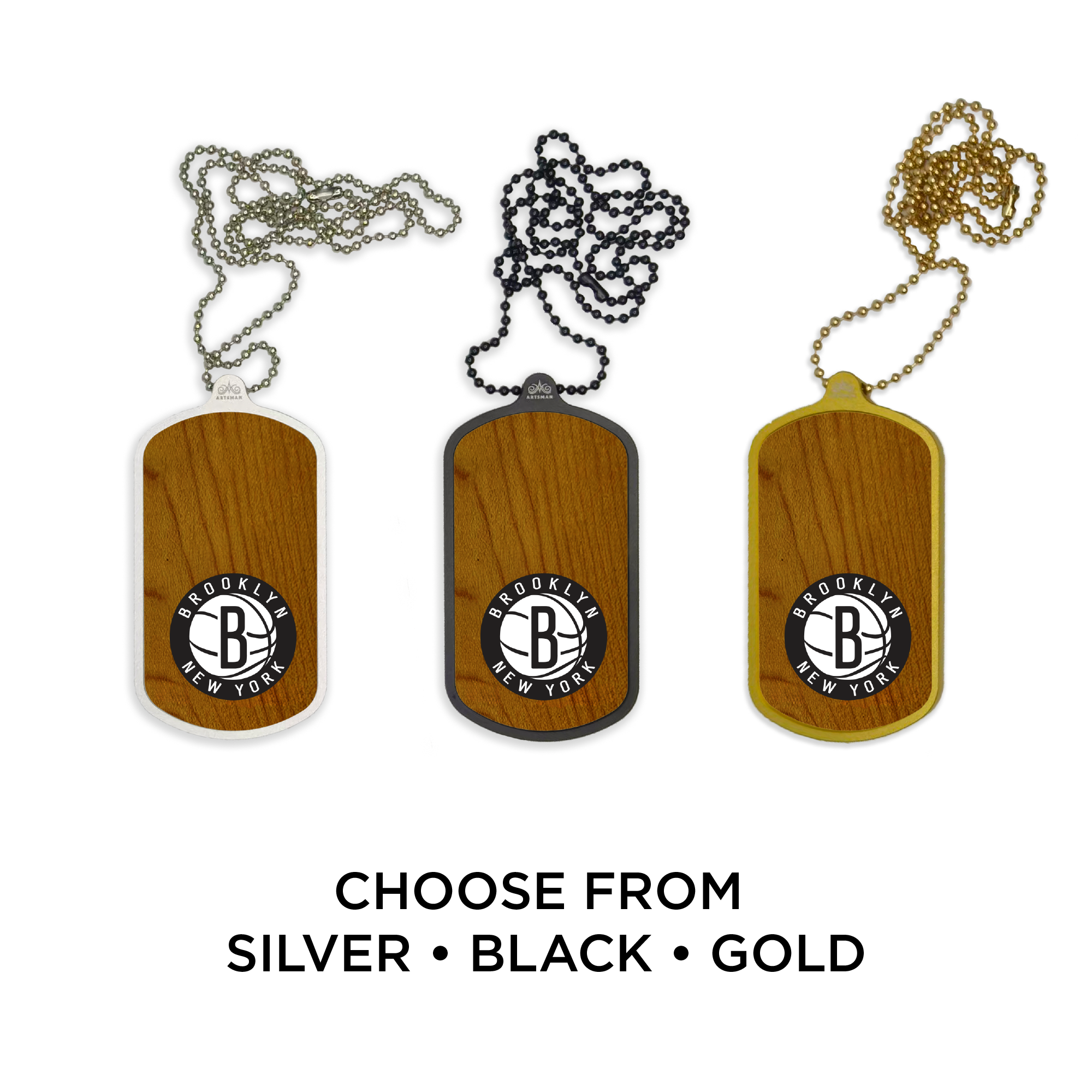 Make a statement with our Nets Inaugural Court Large Dog Tag! Each 2 1/4"x4 1/4" dog tag is finished with a game-used piece of wood from the Barclays Center court that the Nets made their debut on at the start of the 2012 season. Printed with a Nets 'B' logo, this one-of-a-kind dog tag lets you wear your fandom around your neck and take it with you wherever you may go. Own a piece of Brooklyn Nets history today!