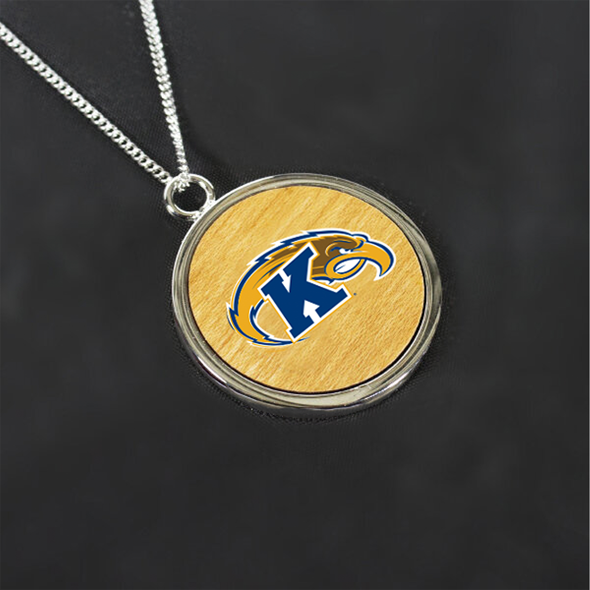 Our Kent State Golden Flashes Pendant is a beautiful way to show your love for the Golden Flashes! This 1.125" sterling silver pendant features a 1"x1" insert of game-used court from the MAC Center that the Golden Flashes played on from 1992-2025.