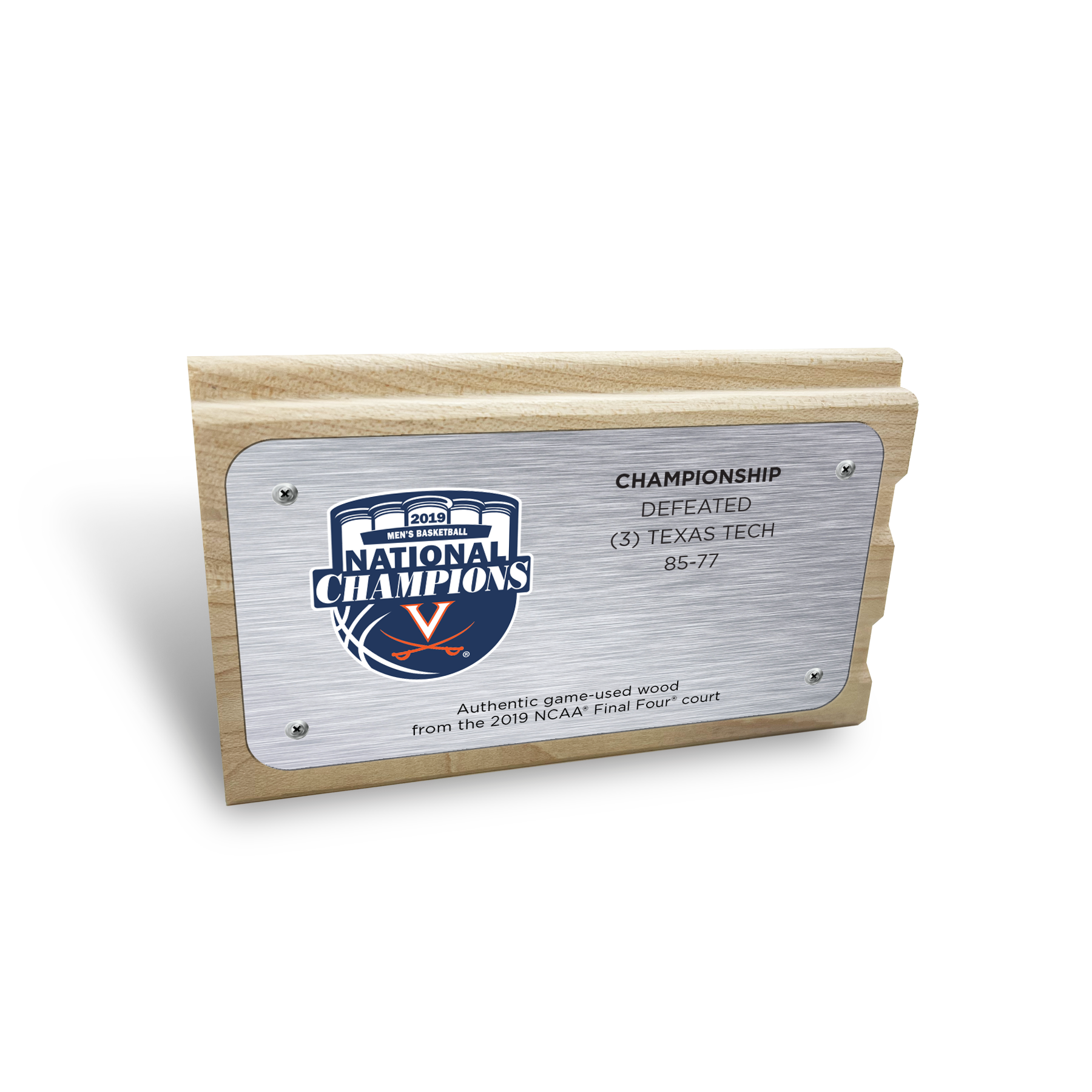 Celebrate the Cavaliers 2019 NCAA® Championship win with this one-of-a-kind piece of history! Our Virginia Cavaliers 2019 Men's NCAA® National Championship Mini-Mini Court is a 2.25"x4" piece of game-used court from the 2019 Final Four® at U.S. Bank Stadium in Minneapolis, Minnesota. Each mini-mini court is printed with a replica of the 2019 Final Four® Court on the front and a brushed metal plate with the championship logo and game stats attached to the back. This handheld piece of memorabilia is essential for any collection.