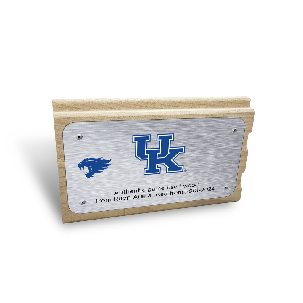 Celebrate the glory and triumph achieved at Rupp Arena with this one-of-a-kind piece of history! Our University of Kentucky® Rupp Arena Mini-Mini Court is a 2.25"x4" piece of game-used court from Rupp Arena that the Wildcats played on from 2012-2024. Each mini-mini court is printed with a replica of the Rupp Arena court on the front and a brushed metal plate with logos attached to the back. This handheld piece of memorabilia is essential for any collection.