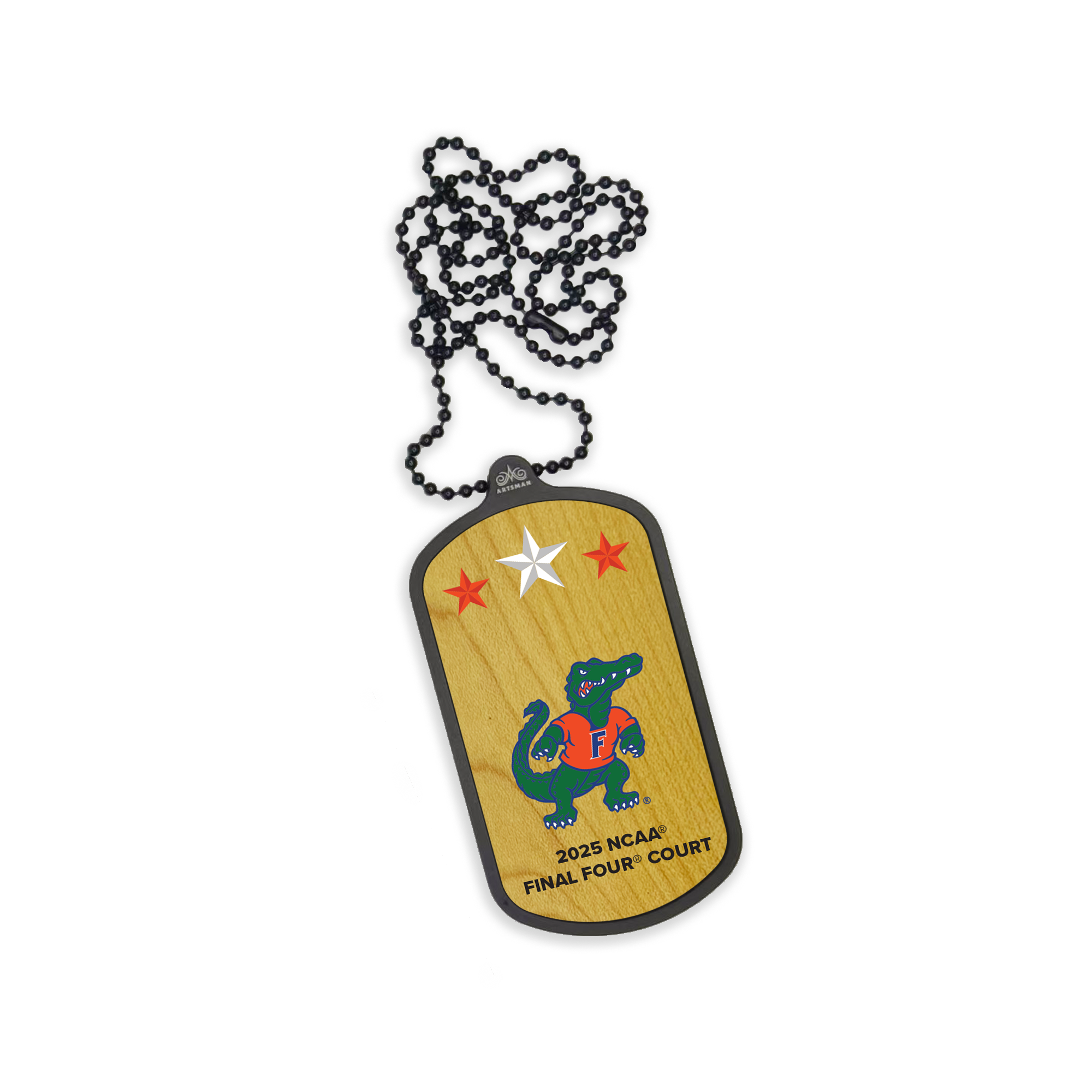 Make a statement with our University of Florida Gators 2025 Men's NCAA® National Championship Dog Tag! Each 2 1/4"x4 1/4" dog tag is finished with a game-used piece of wood from the 2025 Final Four® court and printed with the Florida Gators logo. This one-of-a-kind dog tag lets wear your fandom around your neck and take it with you wherever you may go. Own a piece of Gators history today!